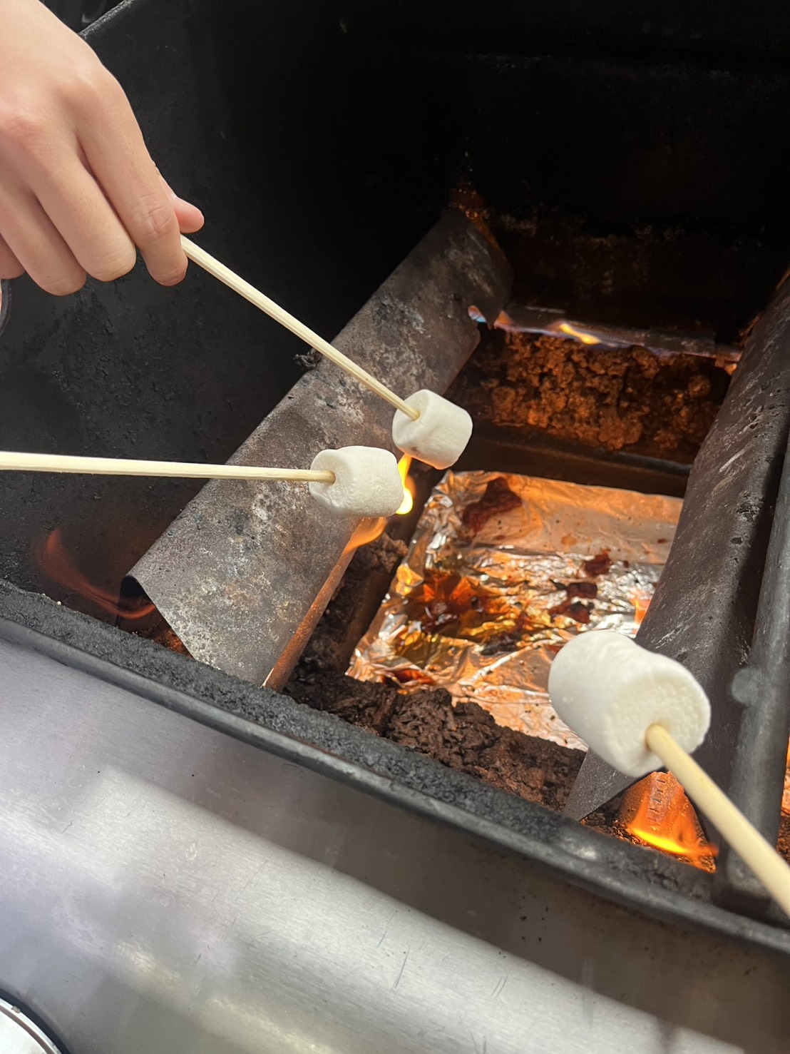隅っこで焼いていたら同期が話しかけてくれて最終的にみんなで焼いたマシュマロ