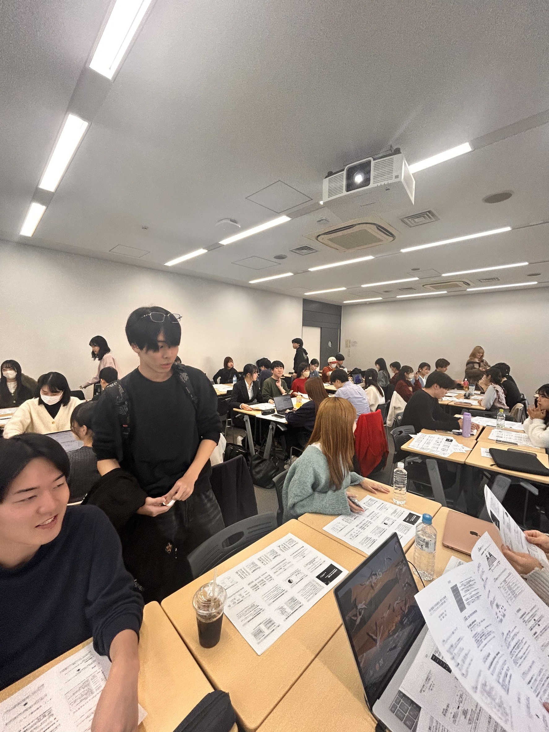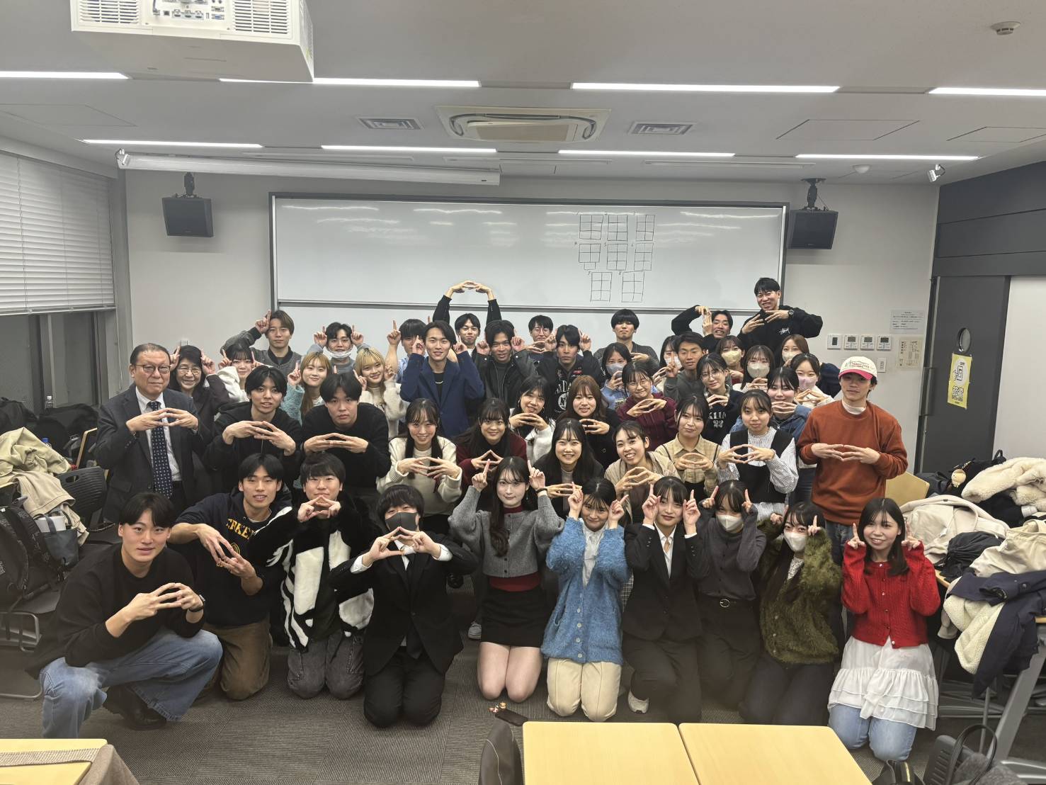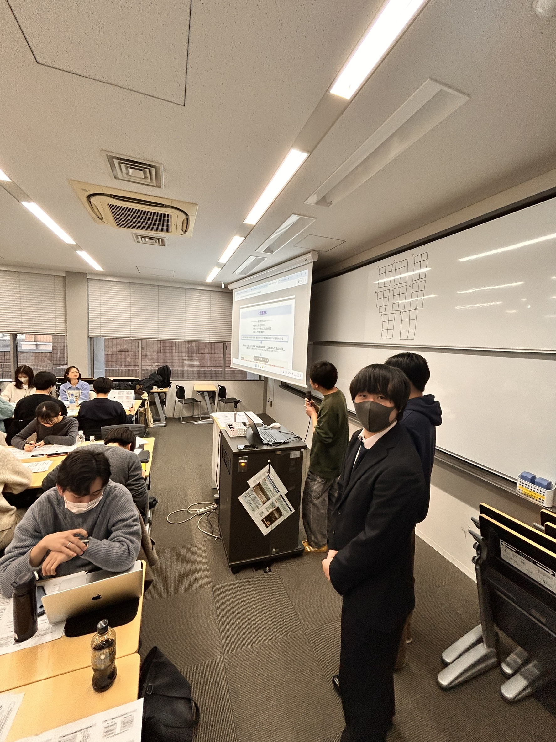 なんと教室内の学生の人数は50人!牛ゼミは比較的人数が多いゼミですが、日高ゼミの学生さん方も加わるといつも以上に教室がいっぱいに感じました。