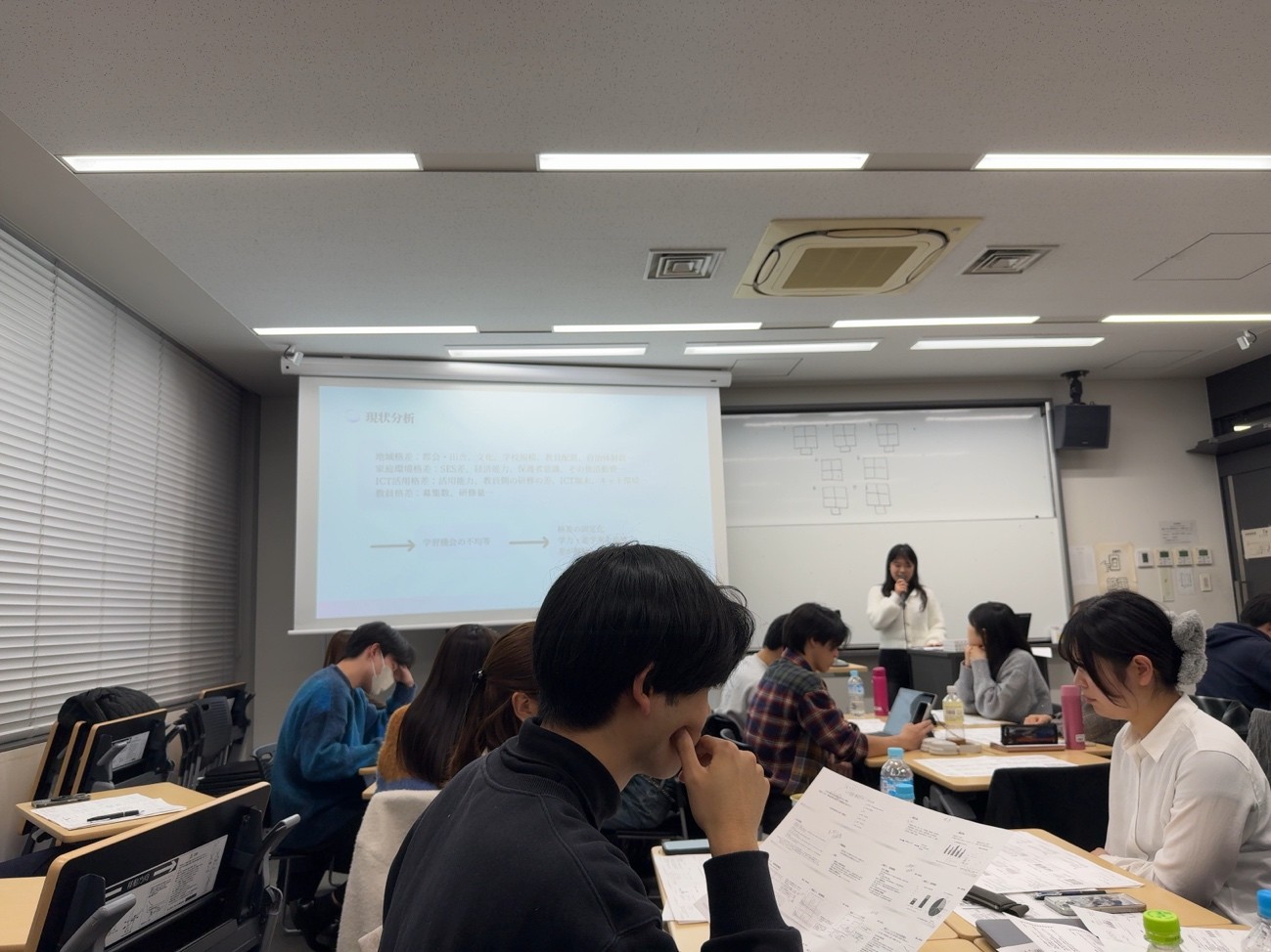 みやきさんの発表では、日本の教育格差がなぜ解消されないのかについて、経済支援・ICT支援・教員支援などの複数の観点から整理されており、非常に理解しやすかったです。これまでの政策が部分的な対応にとどまり、現場での実行や継続性が十分でない点を課題として指摘していた点が印象に残っています。また、日本とフィンランドの事例を比較することで、日本の教育政策の特徴や限界が明確になっていた点も興味深かったです。