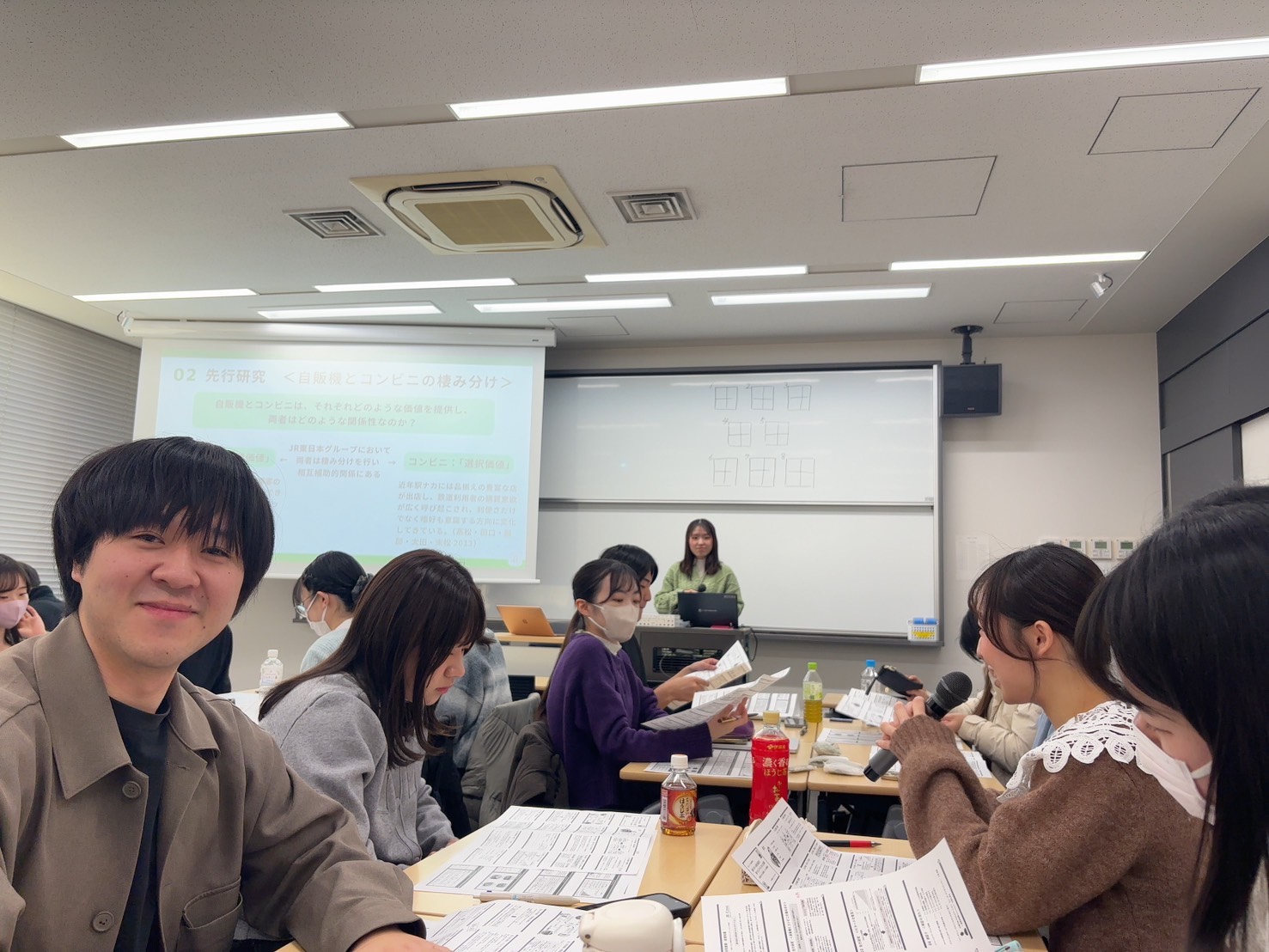 寒さも本格的になってきましたが、みなさんいかがお過ごしでしょうか? さて、本日はついに2025年最後のゼミでした! これまで続いてきた4年生の卒論中間報告も、残すところあと2人…。 そんな一年の締めくくりとなる今日は、我らがゼミ長のとうまさんと、副ゼミ長のさくぴさんによる発表がありました!